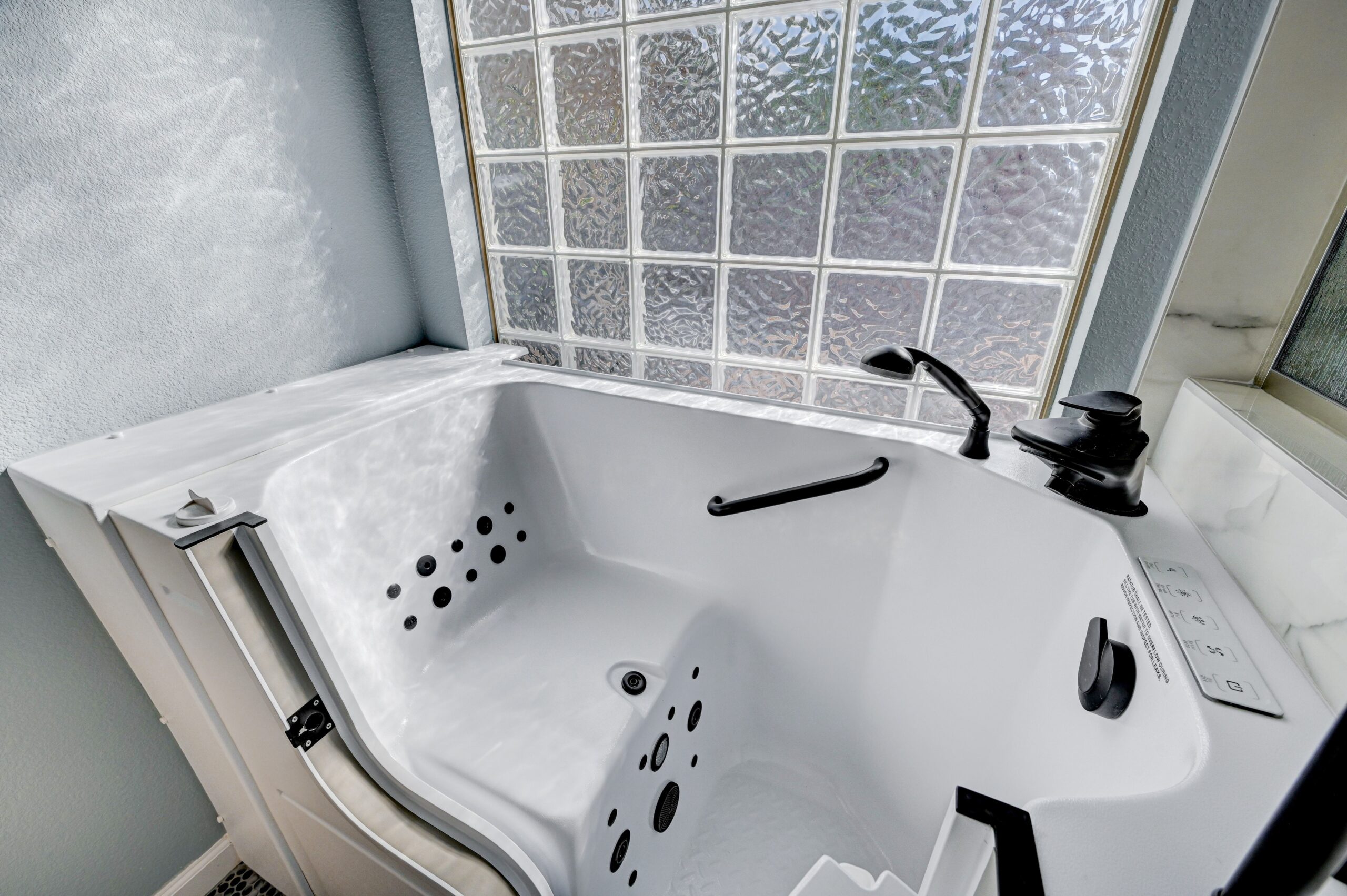 This shower showcases the MSI porcelain panels in Monteblanc Statuatio with a white Kohler shower pan. We added a brand new Delta Albion Stainless Steel shower valve/trim and shower head which really pulled the whole shower together. This bathroom showcases a fully loaded left side swing Sanspa walk in tub. This tub comes fully loaded with Matte Black fixtures, 14 air jets, 8 water variable jets with a heater, heated back rest and seat, ozone system, aroma therapy, chroma therapy and a 10” tub filler. We also had to add 2 dedicated 20 AMP circuits and 2 GCFI outlets dedicated to the tub. We retiled the area around the shower and tub with MSI’s Penny Rounds – Grigio Mix.